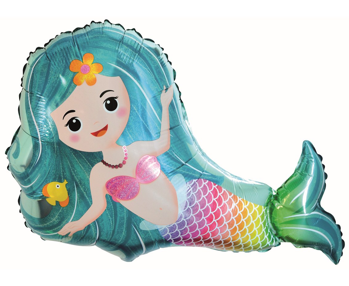 Holo folijski balon v obliki morske deklice, s svetlečimi večbarvnimi detajli. Dimenzije približno 66 × 47 cm. Originalna embalaža, samozapiralni ventil za enostavno polnjenje. Idealen za polnjenje s helijem, tako da balon lebdi in je zvezda vsake morske in rojstnodnevne dekoracije.