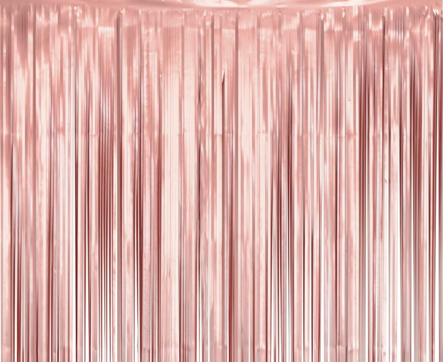 Ta mat rožnato zlata dekorativna zavesa iz tankih folijskih trakov je idealna za zabave, fotografska ozadja in posebne dogodke. Enostavna je za namestitev in daje prostoru eleganten sijaj.