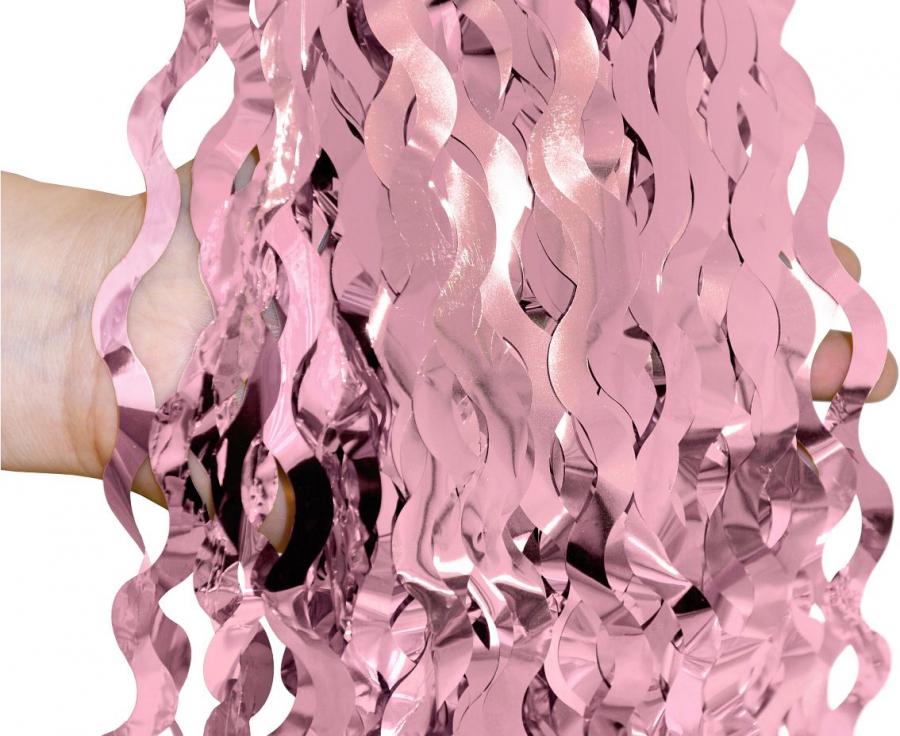 Svetleča roza folijska zavesa iz tankih trakov ustvarja glamurozno kuliso za praznovanja in fotografiranja. Dimenzije 100 × 200 cm. Paket vsebuje 1 dekorativno zaveso.