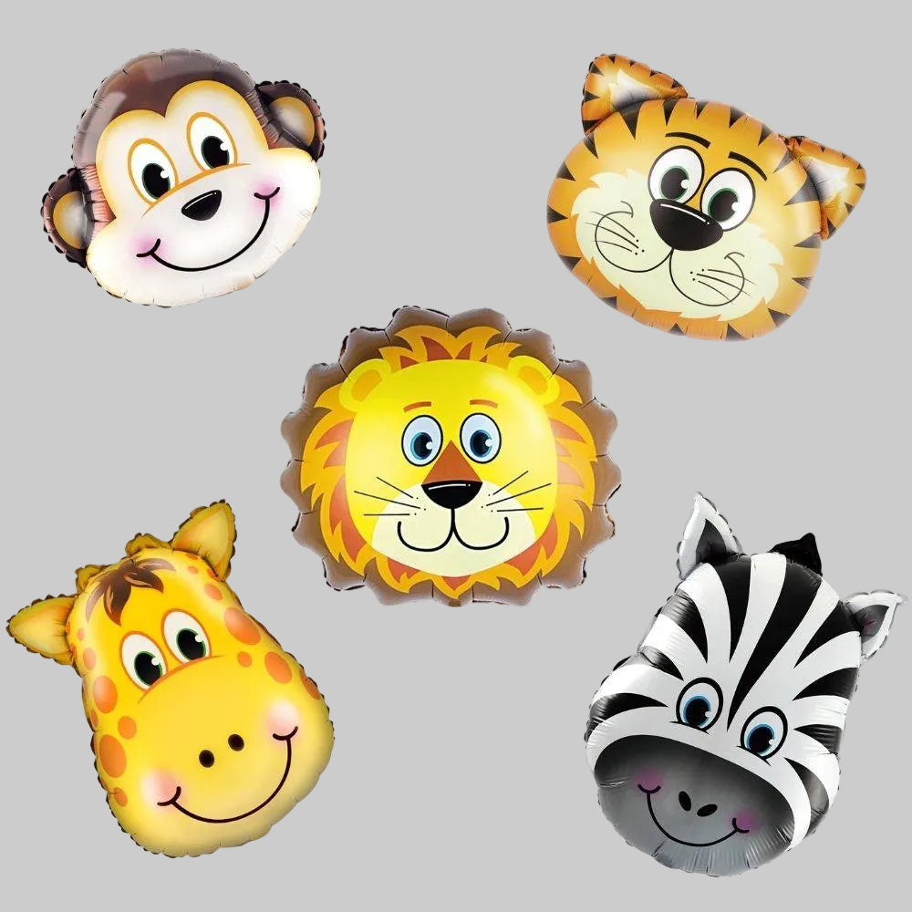 Prikupni folijski baloni z živalmi, ki bodo razveselili vsakega otroka. Opica, krava, lev in drugi so popolni za rojstnodnevne okraske. Komplet 5 kosov, s palčkami, približno 54 × 59 cm.