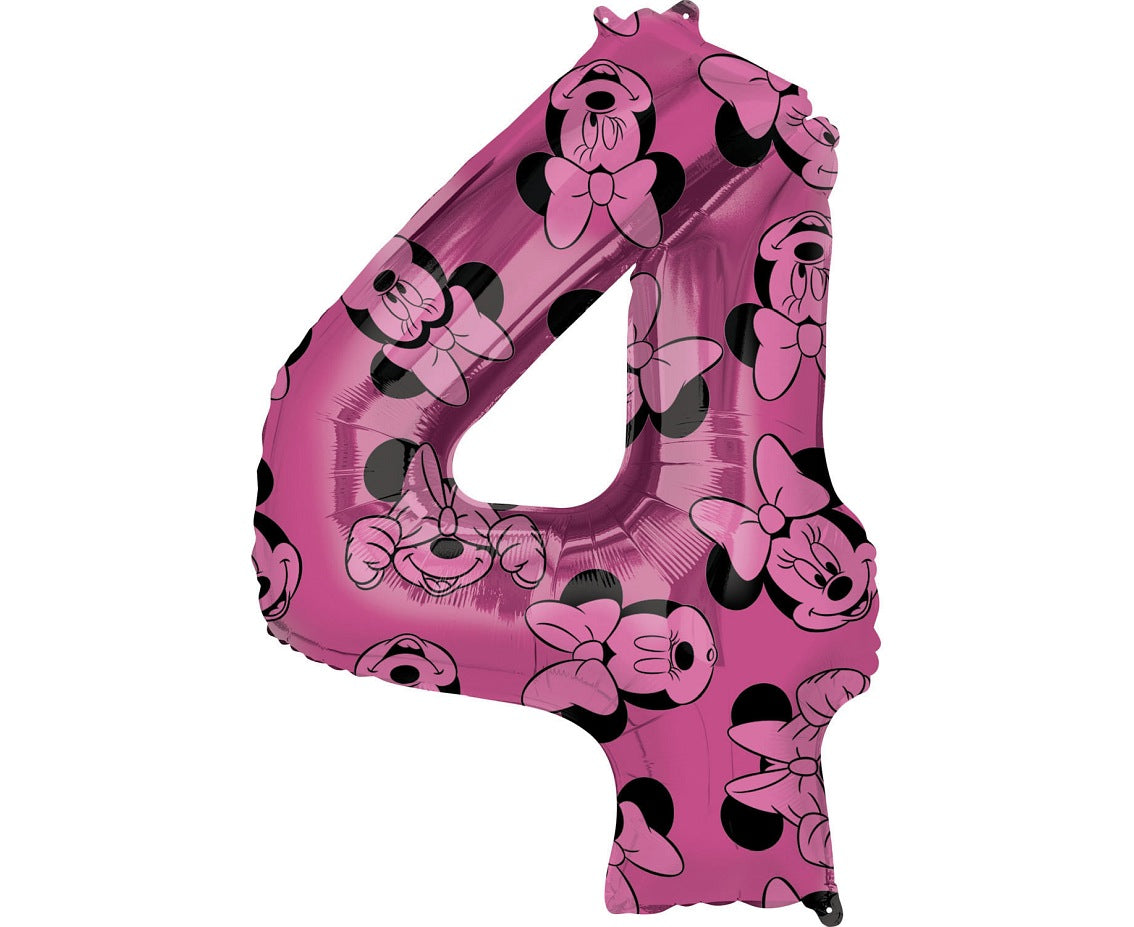Rožnat folijski balon v obliki številke 4 z motivom Minnie Mouse. Dimenzije približno 45 × 66 cm. Originalna embalaža s certifikatom CE. Primeren za polnjenje s helijem ali zrakom (lebdi s helijem). Popolna dekoracija za rojstnodnevno zabavo za deklice in Disneyjeve oboževalce.