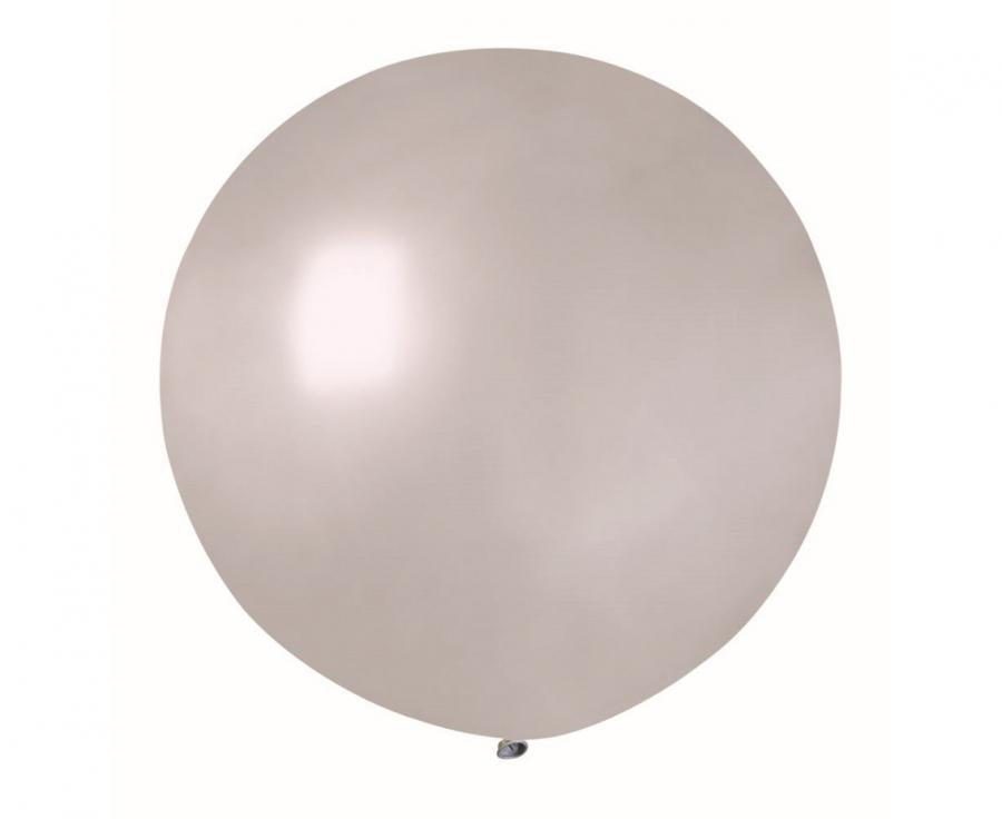 Velik lateks balon v elegantni srebrni kovinski barvi, premera 80 cm (priporočeno 65 cm). Ustvari razkošen učinek in je popoln za rojstne dneve, poroke in glamurozne dogodke.