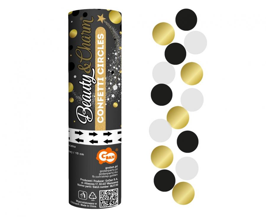 Pnevmatski top za konfete z obroči sprošča konfete z vrtenjem cevi. Brez pirotehnike, uporablja stisnjen zrak in je namenjen samo odraslim.