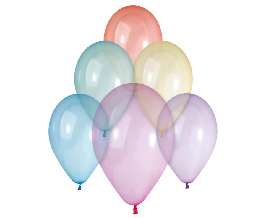Kristalni lateks baloni Gemar, premera 30 cm, v prozorni mešanici barv. Izdelani v Italiji iz 100 % naravnega in biorazgradljivega lateksa, idealni za dekoracije in praznovanja. Paket 30 kosov.