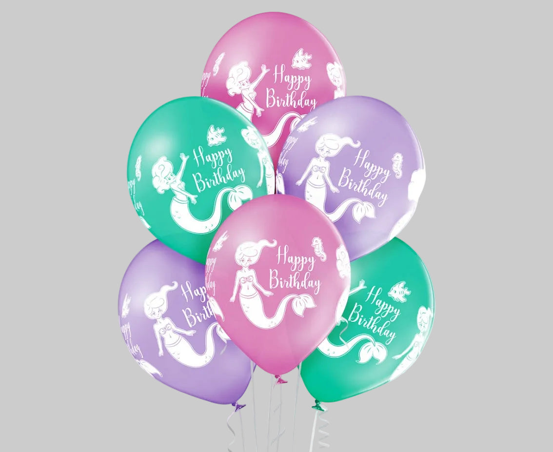 Lateks baloni Sea World Mermaid 30 cm, komplet 6 kosov