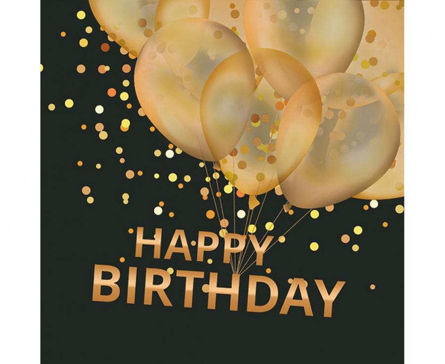 Papirnate serviete velikosti 33×33 cm z motivom zlatih balonov so idealne za rojstne dneve in praznične zabave, praktične za serviranje in dekoracijo mize.
