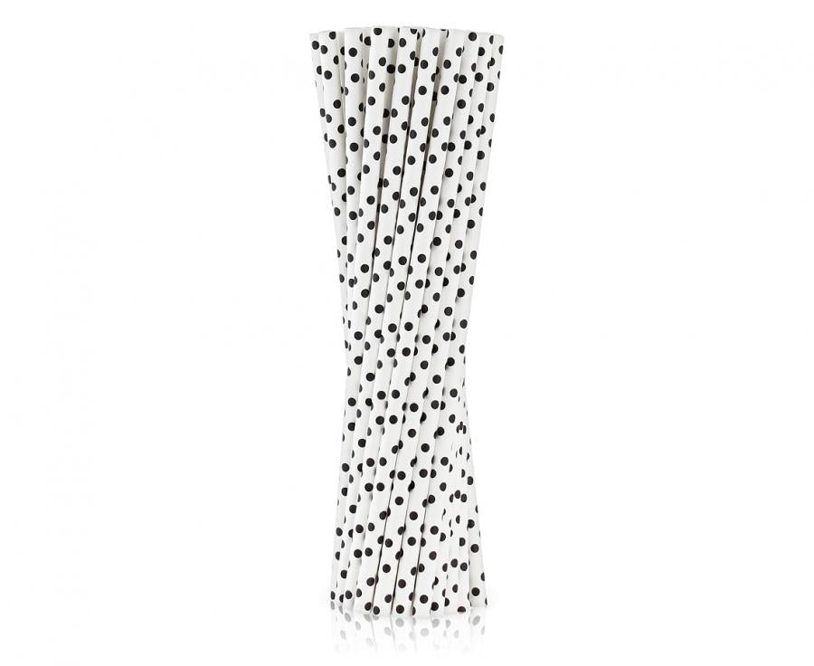 Elegantne papirnate slamice v beli barvi s črnimi pikami - idealne za zabave, vrtna srečanja in koktajle. Okolju prijazna izbira za vsako praznovanje. Paket 250 kosov.