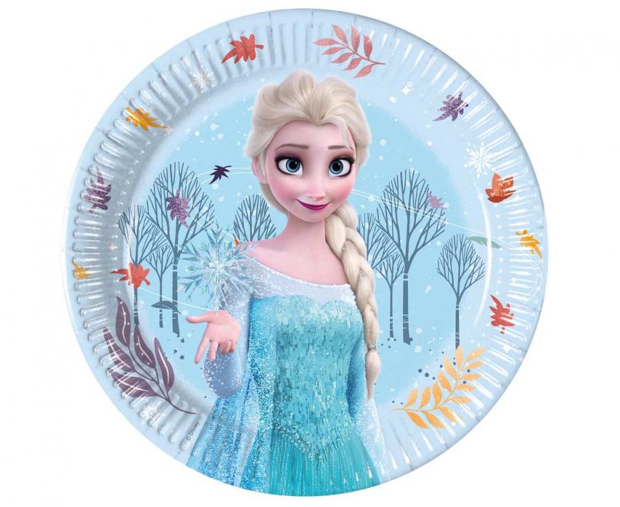 Barviti papirnati krožniki z motivom junakinje Ledenega kraljestva, idealni za otroške rojstne dneve in tematske zabave. Premer 23 cm, pakiranje 8 kosov.
