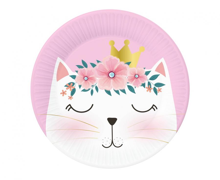 Okrogli papirnati krožniki s premerom 18 cm z motivom mačke. Barviti in zabavni, idealni za otroške zabave in tematske mize. Paket vsebuje 6 kosov.