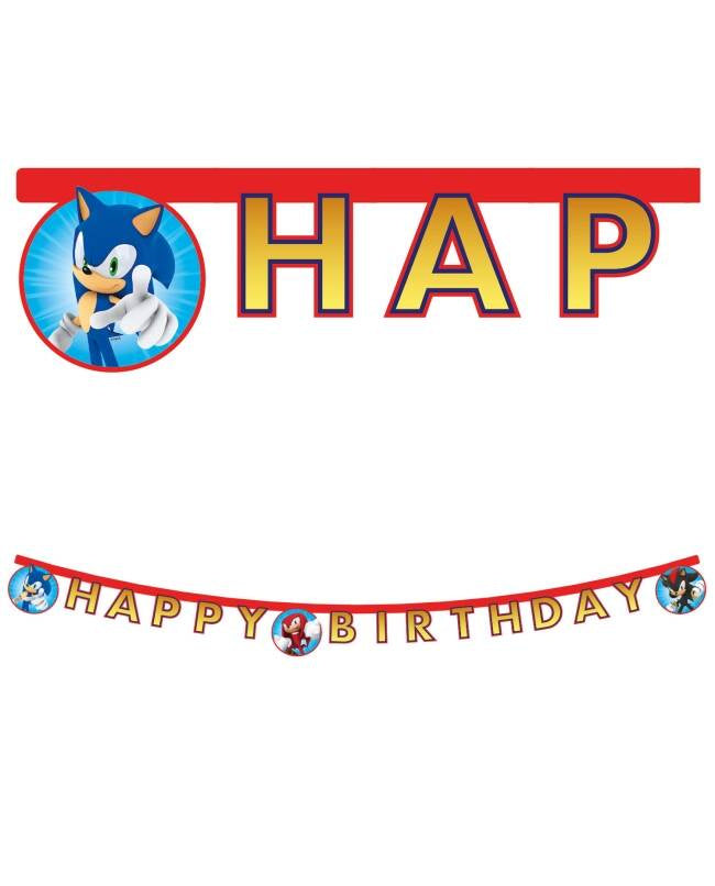Sonic Happy Birthday banner 200 cm – rojstnodnevna dekoracija